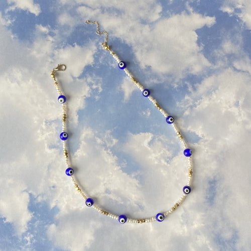 Evil Eye Pearl Necklace.